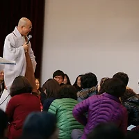 (스님 법문 듣고 좋게 생각하려고 많이 노력해서 아침에 국 안 끓여도 되니까 편하다, 하고 생각할 줄 알게 되어 지금은 편하지만 과거 상처를 놓진 못하고 있어요)